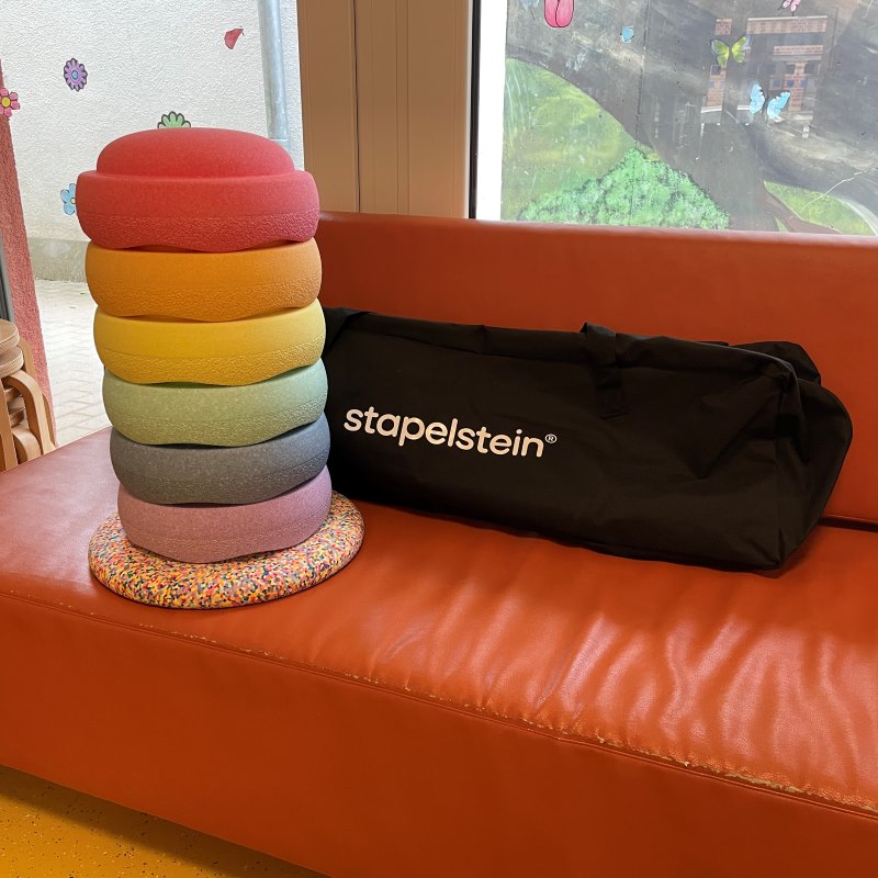 Die Matschküche und den SensoPfad XL übergaben wir im Mai an die KiTa. Das Theater wird am 24. September stattfinden. Im Juni konnten wir noch die Stapelsteine inklusive Balance-Board und Tasche kaufem.